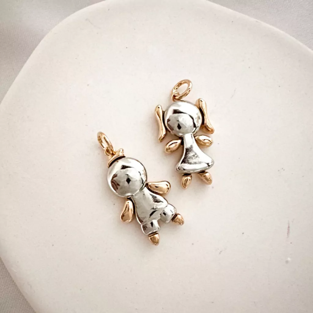 Pingente Filho e Filho com os dois banhos: ouro 18k e ródio branco. Aproximadamente 2,85cm de altura.