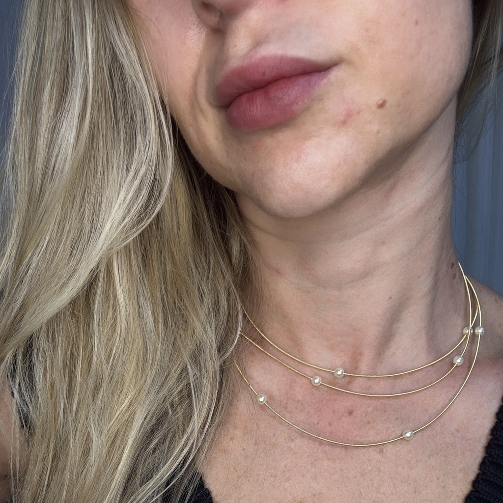 Fio de semijoia em corda de violão com extensão de 150cm e fecho do tipo imã. Com Perolinhas em toda a extensão da peça. Disponível nos banhos ouro 18k e ródio branco - te permite dar várias voltas no pulso. Pode ser usada sozinha, com pingentes, em mix com outras pulseiras e até mesmo no pescoço como colar.